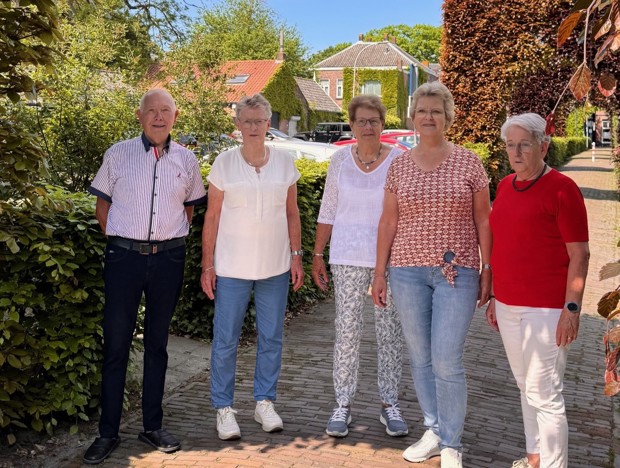 Van links naar rechts: Meneer Tand, mevrouw Van Suntenmaartensdijk, mevrouw Tand, mevrouw Van der Schans, mevrouw De Kort