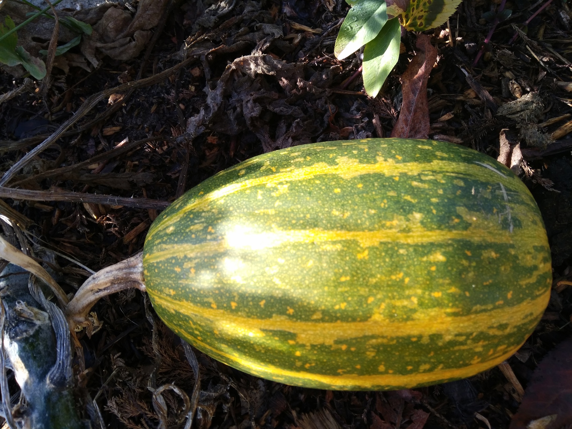 Mijn pompoenplant geeft dit jaar -net zoals diverse andere planten- weinig oogst. Zo gaven bijvoorbeeld ook mijn fruitbomen minder vruchten. De strenge vorst in de lente is daar waarschijnlijk debet aan. En de natte zomer. Want ook al vond ikzelf deze zomer de beste zomer sinds jaren, voor diverse planten in mijn tuintje had dit een andere uitwerking. Rammenas bijvoorbeeld -een knolgroente die verwant is aan radijs- droeg dit jaar zelfs helemaal geen vrucht, maar schoot meteen in bloei. En mijn gojibesstruik had dit jaar voor het eerst last van schimmelziekte, waardoor ik haar heb gesnoeid en er dus geen gezonde besjes van heb kunnen eten.