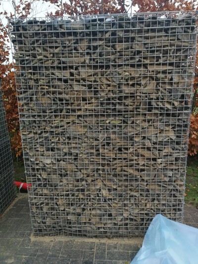 Voorbeeld van een omheining van gebruikte dakpannen in het nieuwe Salviapark in Waalwijk