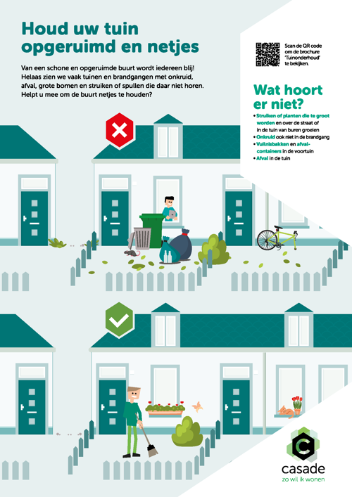 Een tekening zegt soms meer dan woorden. Daarom gebruiken we steeds vaker beeldtaal in onze communicatie. Zo hebben we een flyer met uitleg over tuinonderhoud en ventileren. Daarop staan duidelijke plaatjes die laten zien waarom dit belangrijk is en hoe u dit het beste doet.