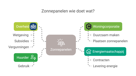 - Zonnepanelen bij woningverbetering – deze zonnepanelen worden vaak geplaatst als we een woning duurzamer maken. De huurders van deze woningen hebben het voordeel van de opgewekte stroom en betalen hiervoor een kleine vergoeding.
