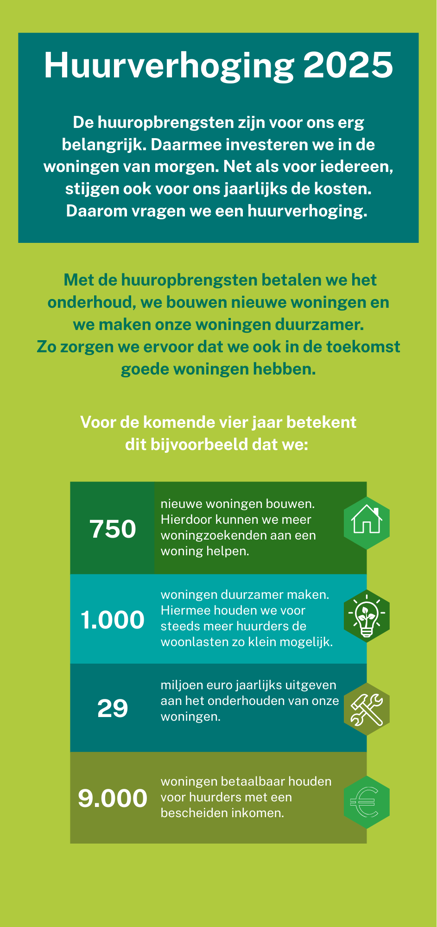Woensdag 16 april kwamen de coalitiepartijen PVV, NSC, VVD en BBB tot een akkoord over de voorjaarsnota. Zij hebben hierin gezegd dat er in 2025 en 2026 geen huurverhogingen voor sociale huurwoningen komen. We begrijpen dat het verwarrend is dat u de dag erna een brief van ons krijgt waarin staat dat u een huurverhoging krijgt. Hoe zit het nu precies?