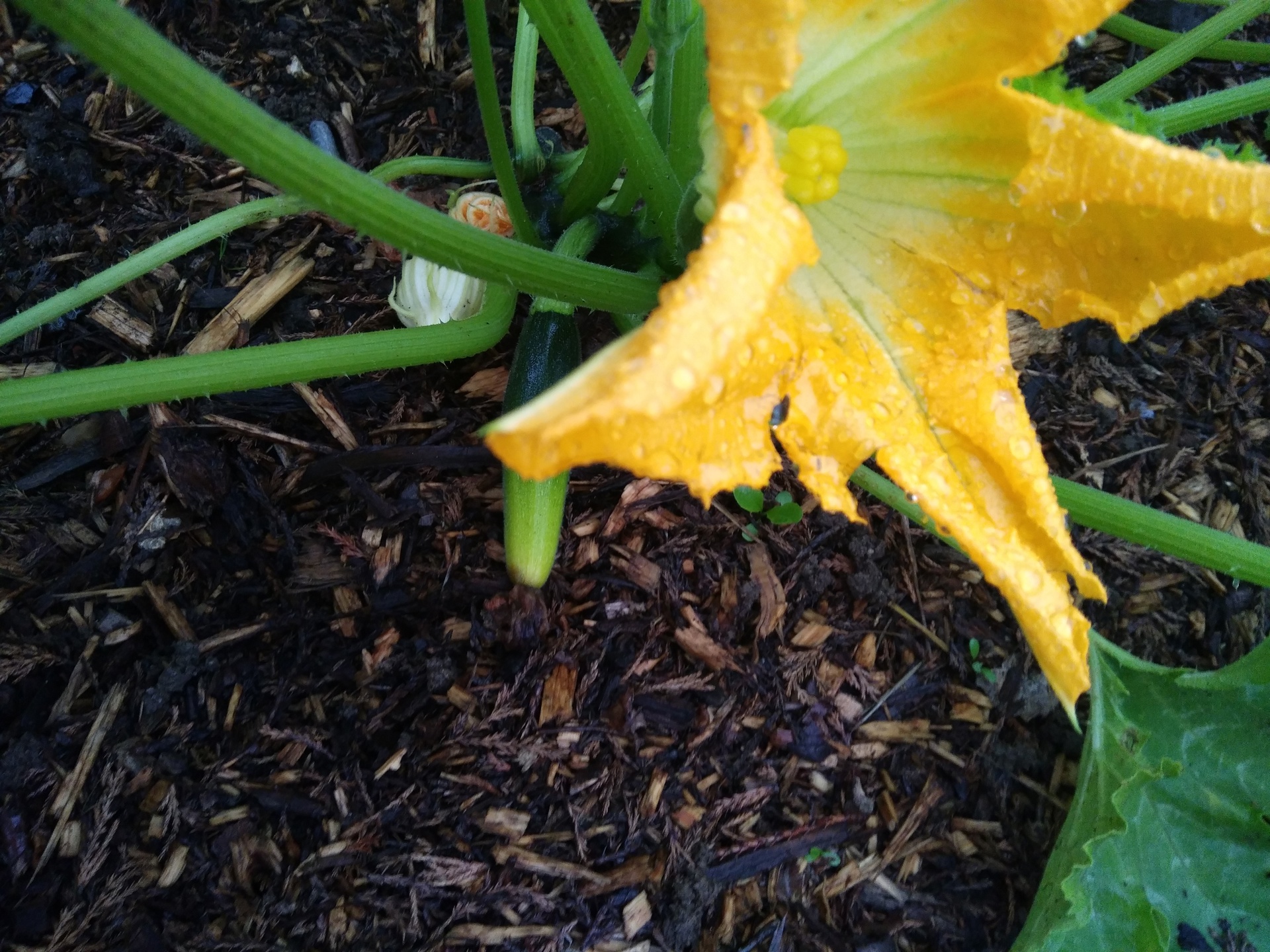 De courgetteplanten in mijn voortuintje zijn op dit moment net begonnen met vrucht aan te maken. Tot voor kort waren het vooral grote gele bloemen die je ’s ochtends zag. Want later op de dag gaan de bloemen weer dicht. Dat alleen is al bijzonder om te zien. En nu zijn de plantjes verder gegroeid en zitten er aan de vrouwelijke bloemen babycourgettejes. Super schattig!"