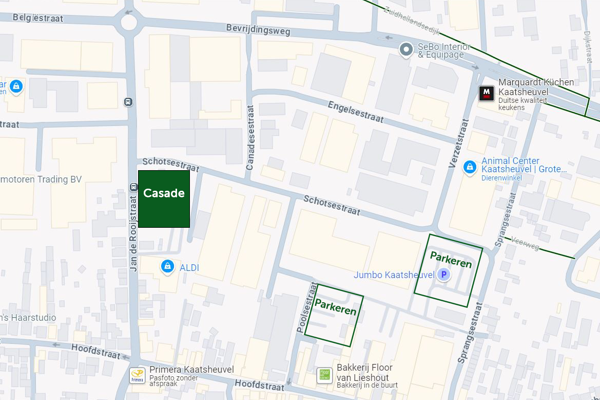 Is de parkeerplaats bij ons kantoor vol? Parkeer dan uw auto op een openbaar parkeerterrein in de buurt. Bijvoorbeeld aan de Poolsestraat of op de hoek van de Schotsestraat/Sprangsestraat (bij winkelpassage Hoofdpoort).