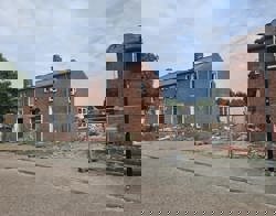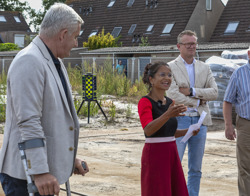 - 6 houten woningen met twee bouwlagen. Deze woningen worden in verschillende onderdelen al in de fabriek gemaakt en op de bouwplaats in elkaar gezet;
